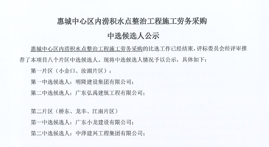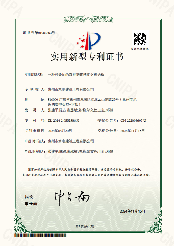 惠州市水電建筑工程有限公司成立于一九六四年四月,隸屬惠州市水務(wù)集團(tuán)有限公司,是一家國有綜合性施工企業(yè),主營水利水電工程、房屋建筑、市政工程等施工業(yè)務(wù)。公司擁有水利水電工程施工總承包一級(jí)、建筑工程施工總承包一級(jí)、市政公用工程施工總承包一級(jí)、公路工程施工總承包三級(jí),公路路基、路面及建筑裝修裝飾專業(yè)承包二級(jí),環(huán)保工程、機(jī)電安裝、河湖整治、輸變電工程專業(yè)承包三級(jí)等經(jīng)營資質(zhì)……